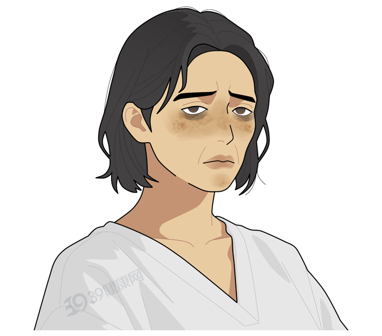 同时,面部、颈部、上胸部有可能会出现的红色血管痣,整个人看起来又老又憔悴。